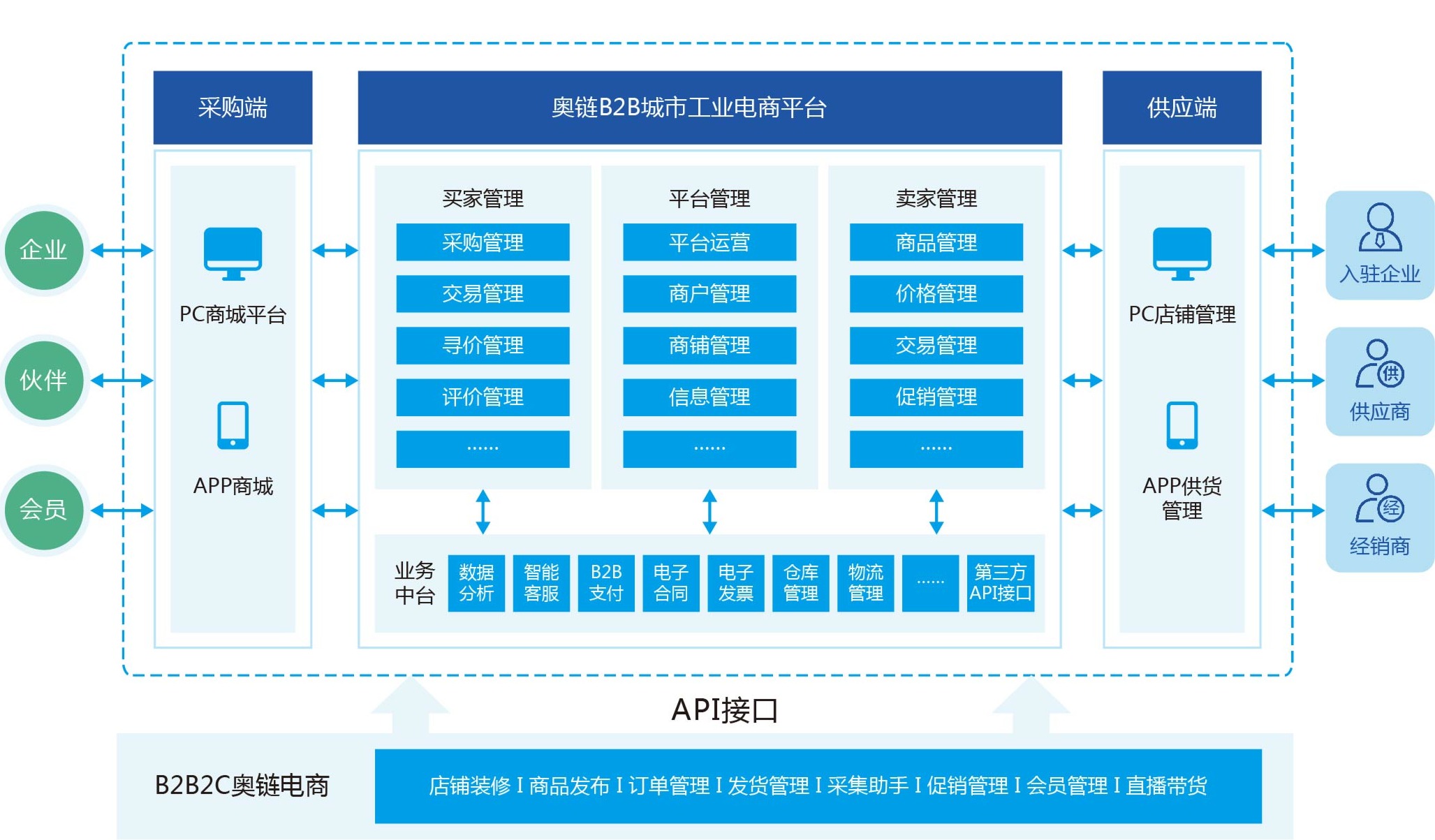 前台电商业务与后台管理系统集成,使企业可以将业务从线下拓展到线上。